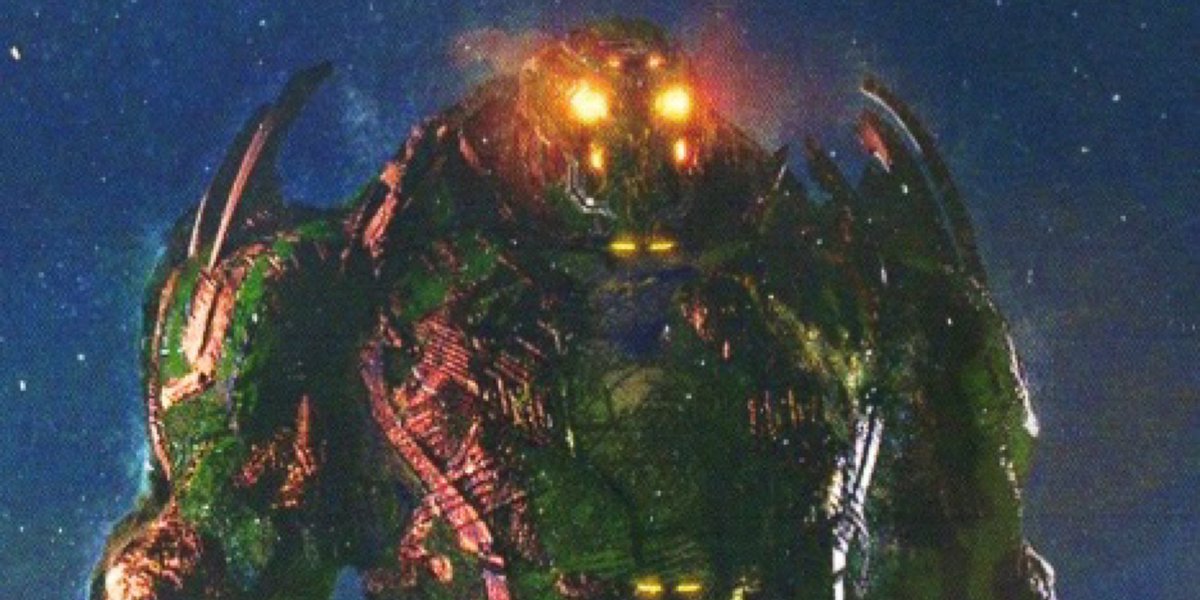 Nezarr appears as a giant dark blue hued. Nezarr the Calculator was one of the Celestials arrived and experimented on the Dinosaurs creating beings like Fin Fang Foom and experimented on early humans creating the Deviants.